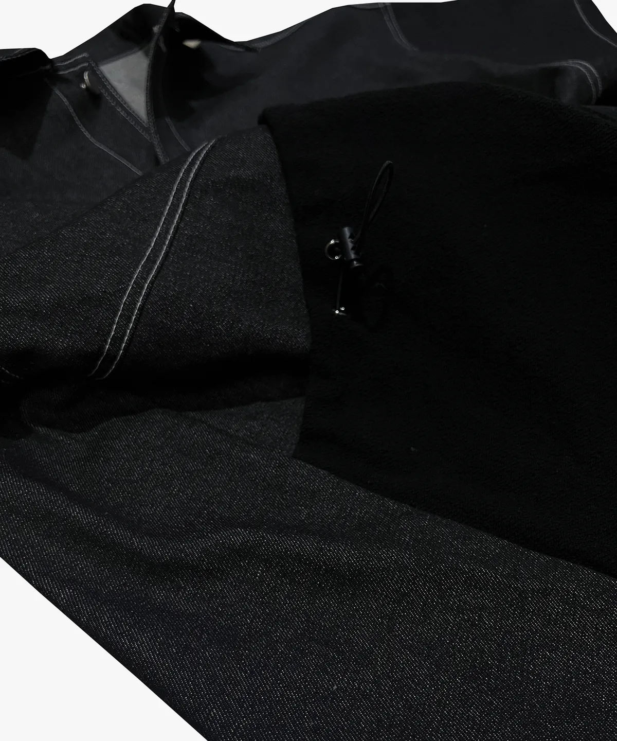 抽繩式毛圈口袋可調式鬆緊,打造立體輪廓。